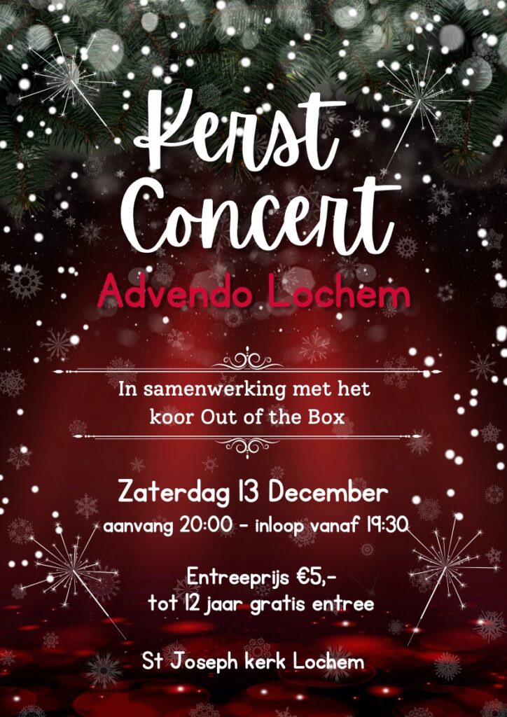 Kom in de kerststemming tijdens het sfeervolle kerstconcert van Muziekvereniging Advendo Lochem samen met het koor Out of the Box. In de prachtig versierde Sint Josephkerk brengen zij een warm en afwisselend programma vol muziek, zang en kerstgevoel.